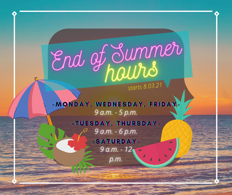 We want you to check back often to see what’s new on the website and when you’re in the area, stop by the library! We have a lot of great activities planned and many wonderful books, movies, and resources for you to explore. Whether you’re interested in a school subject, furthering your education, looking for a great book, or exploring a new hobby, we’re here for you!